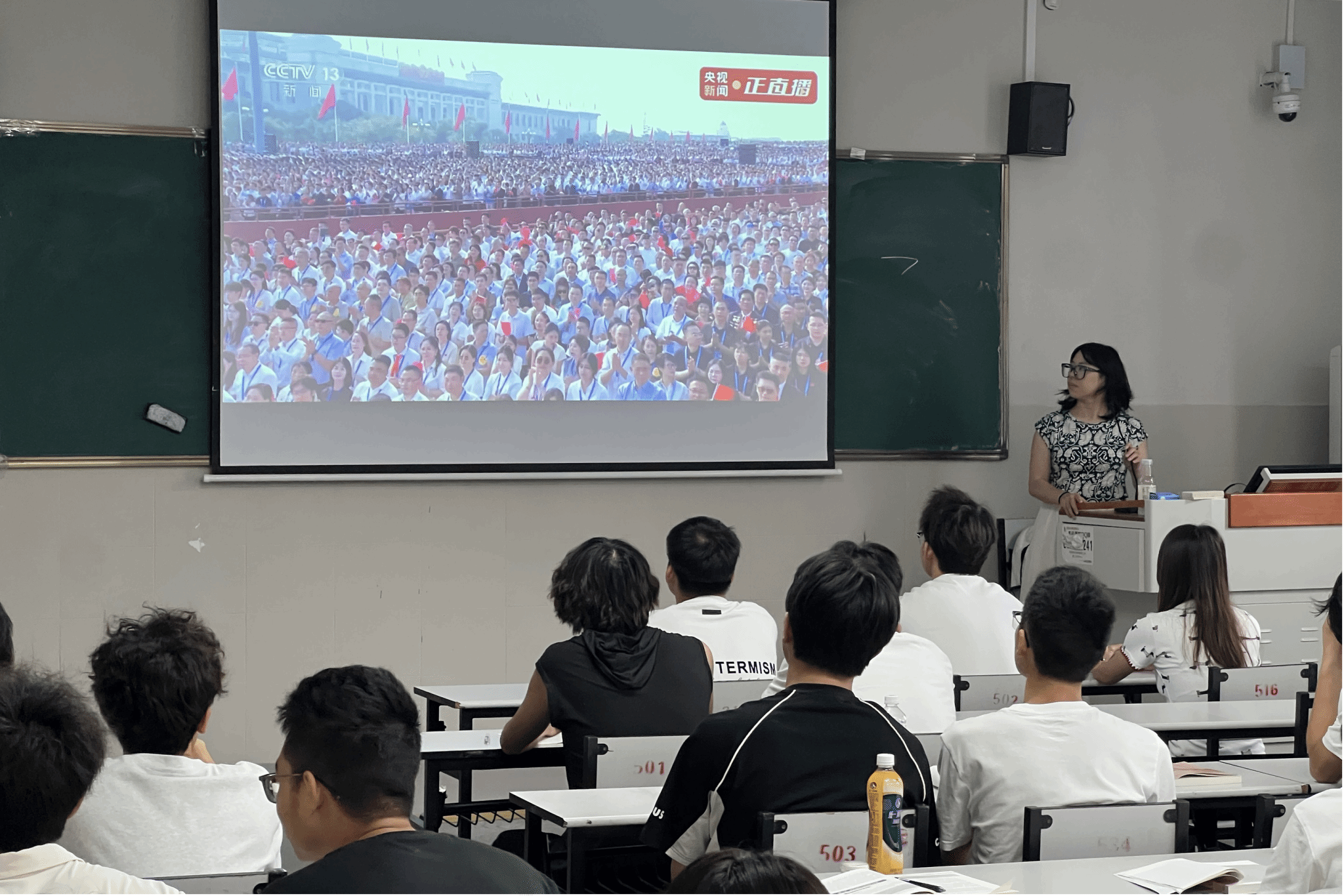 观看过程中,师生全神贯注,情绪高昂。当抗战老兵乘车方队缓缓驶过,许多师生感动不已当包括信息支援、军事航天、网络空间等新域新质力量方队以及按实战化联合编组的装备方队等新型国产现役主战装备震撼亮相时,现场惊呼赞叹不绝于耳由预警指挥机、歼击机、轰炸机等上百架飞机组成的空中梯队呼啸而过,更是引得全场沸腾,掌声雷动。联合军乐团站立演奏的《松花江上》《保卫黄河》等抗战经典乐曲以及新时代强军新创乐曲,仿佛将大家带回到那段烽火岁月,又展现了新时代人民军队的飒爽英姿。