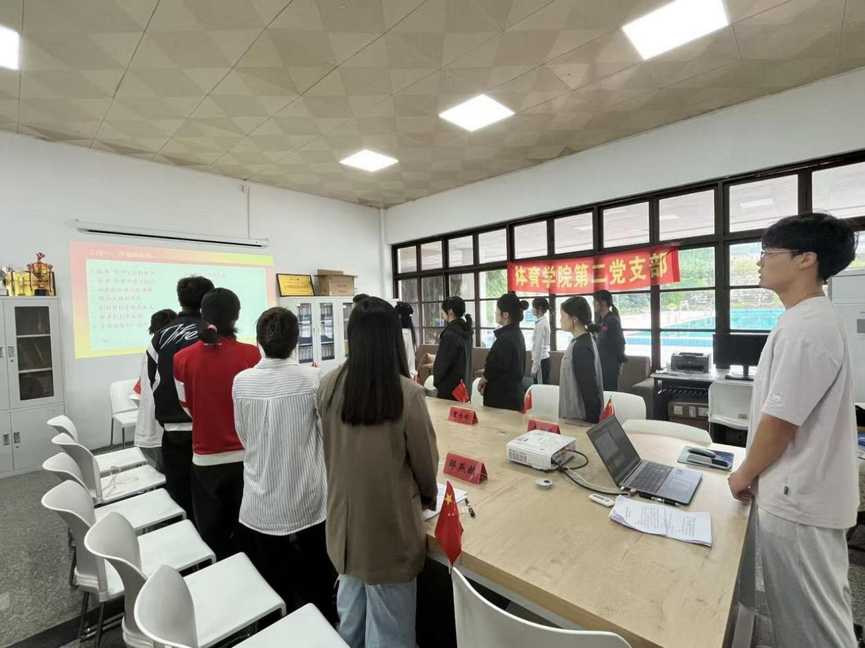 为严格规范党员发展程序,夯实组织建设根基,体育学院第二党支部于9月29日在游泳池会议室召开支部大会,就王茜、张颖睿两位同志转为中国共产党正式党员的事宜进行专题讨论与表决。本次大会由乐虹兵主持,部分正式党员与预备党员共同参会。