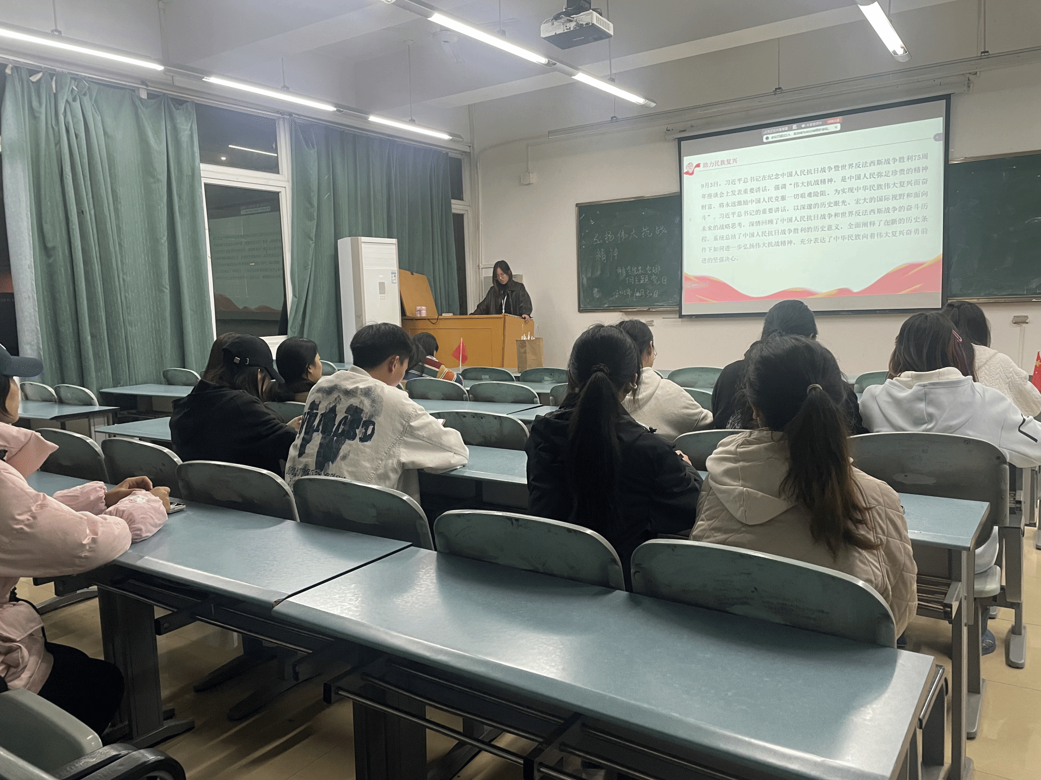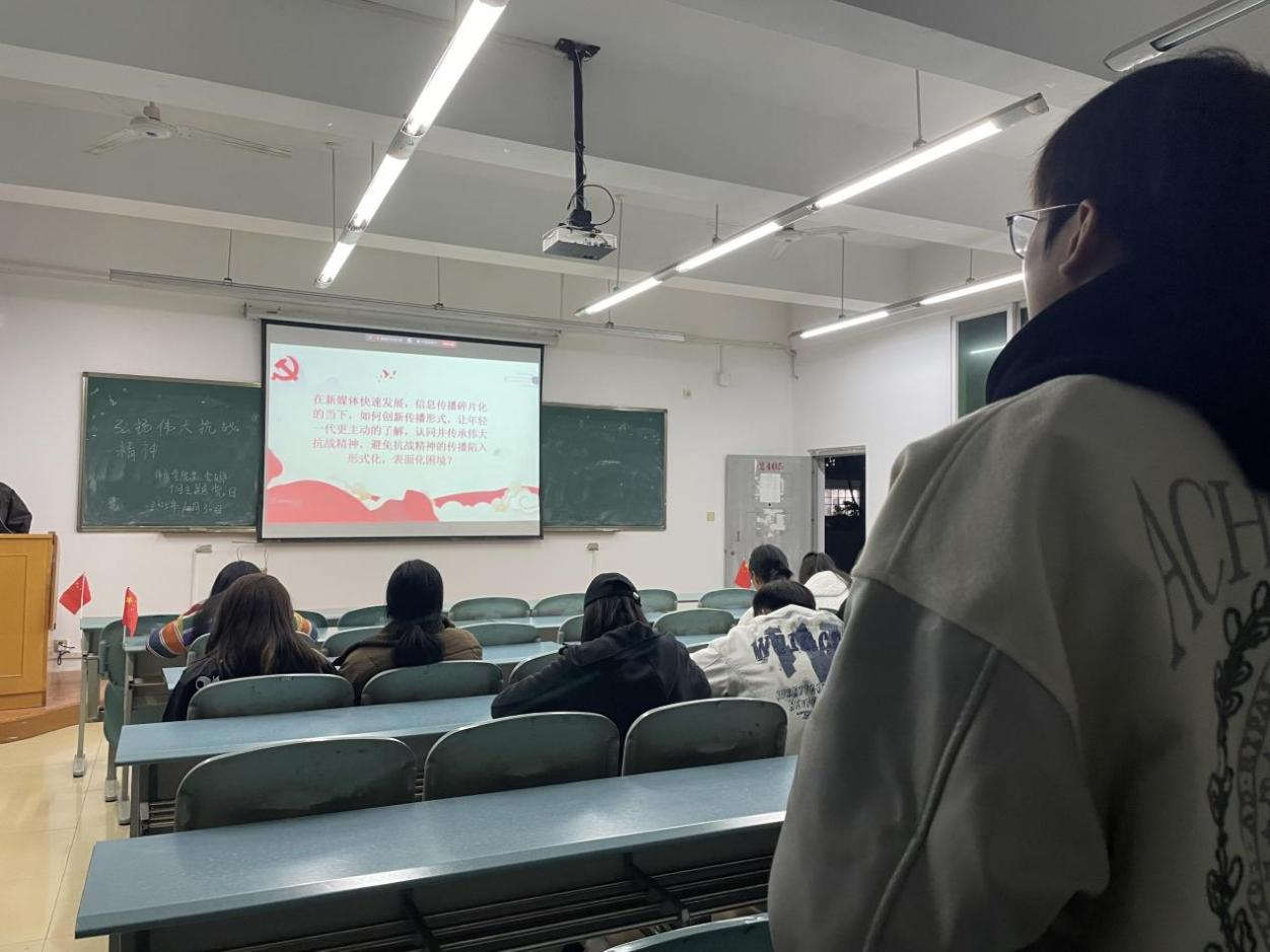 10月30日晚,体育学院第二党支部于2405教室成功召开十月主题党日活动。本次活动由赵锦琳主持,采用线上线下相结合的方式,体育学院第二党支部部分党员、预备党员、入党积极分子、入党考察人员围绕“弘扬伟大抗战精神”主题,开展深入的学习与交流。
