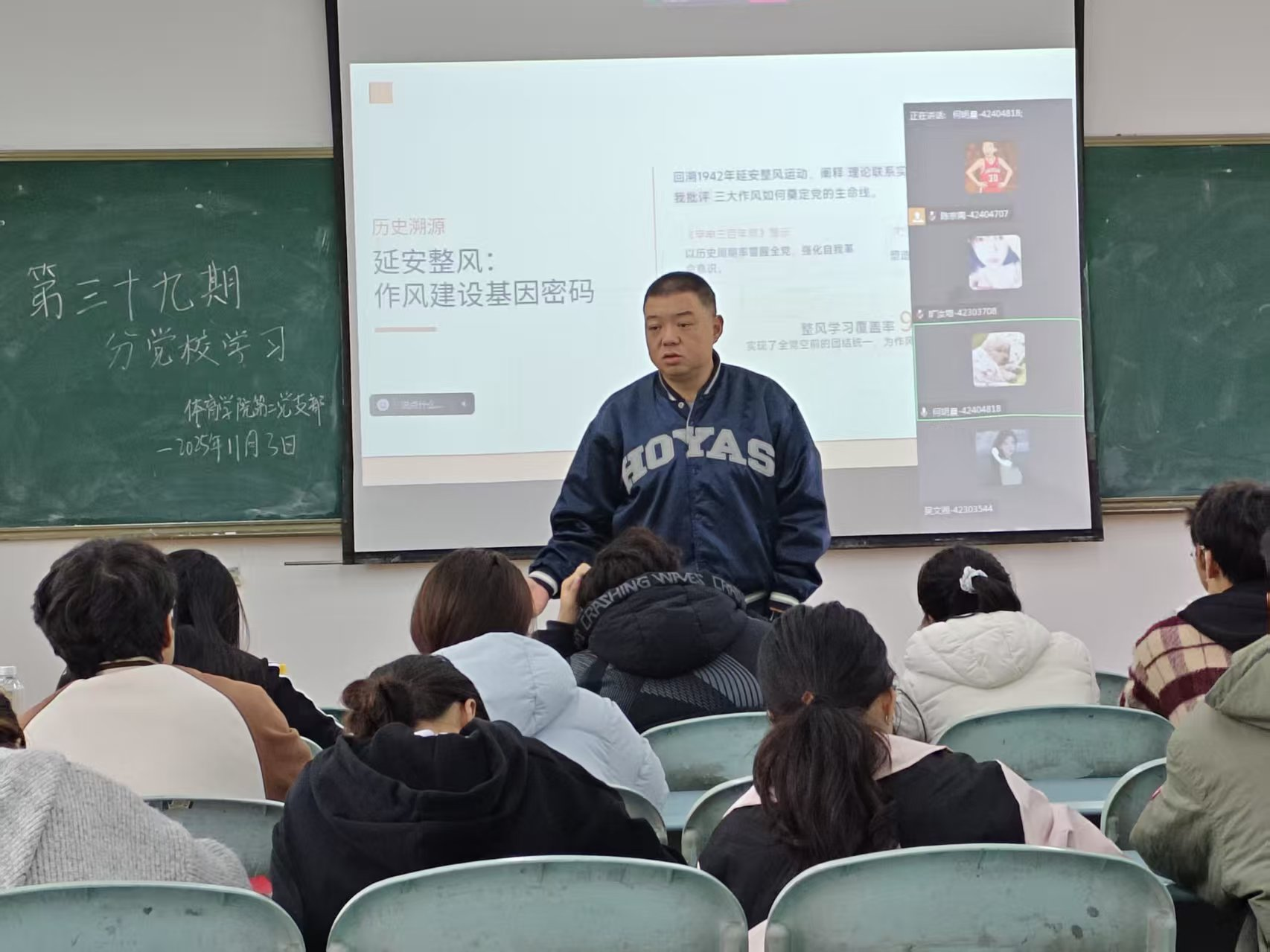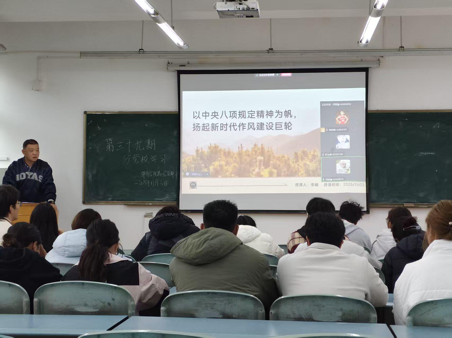 为巩固思想根基、弘扬中央八项规定精神,体育学院党总支于11月3日中午召开第42批入党积极分子党校学习会。会议在2405教室举行,由体育学院党总支书记李峰老师主持,采用成都校区线上、绵阳校区线下相结合方式进行,全体成员积极参与。