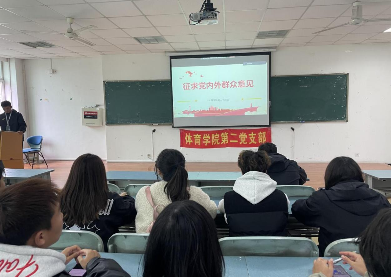 为严格党员发展程序,深化党内外民主监督11月3日中午,体育学院第二党支部在2406教室召开第三十七批预备党员转正征求党内外群众意见会议。本次会议由苗军主持,李玉曦、韩雨杉担任会议记录,学院第三十七批预备党员及其群众发言人共同参与。