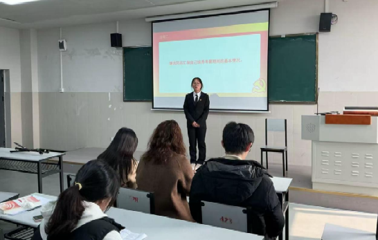 会议在庄严的《国际歌》齐唱声中拉开序幕,全体参会人员起立肃立,歌声铿锵有力,传递出对党的忠诚与追随,凝聚起奋进担当的精神力量。随后,发展对象罗雯、毛妍同志依次上台作汇报发言。她们围绕思想成长轨迹、专业学习成效、体育训练突破及志愿服务实践等方面,全面阐述了对党的性质、宗旨的深刻认识,坦诚分享了入党动机的形成过程,并明确表态将以党员标准严格要求自己,在今后的学习工作中勇挑重担、砥砺前行。汇报内容真实具体,态度诚恳真挚,充分展现了青年学子向党组织靠拢的坚定决心。随后支部发言人介绍两名同志考察情况,支部委员会发表集体意见,明确其已基本具备预备党员条件。与会学生党员充分讨论,肯定优点并提出建设性建议。