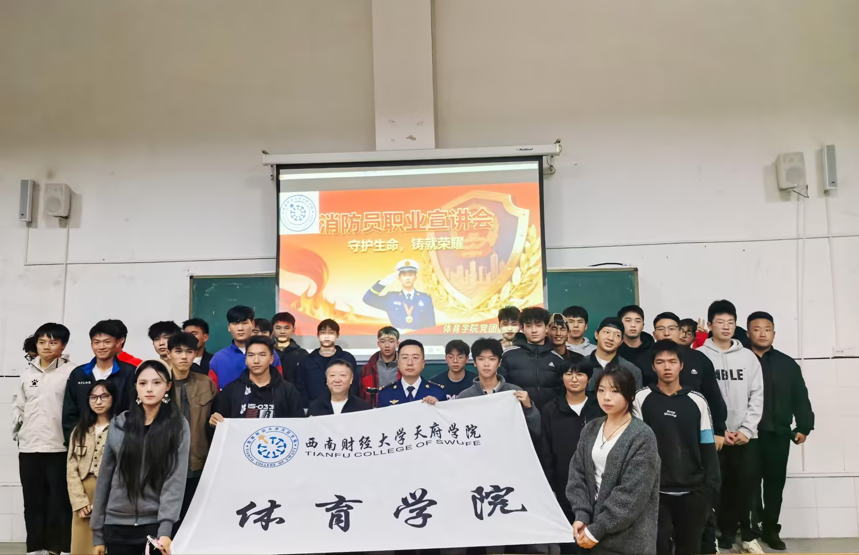为拓宽毕业生就业渠道,加深学生对职业消防员工作的了解,西财天府体育学院特邀成都市消防救援支队队务处领导与西南财经大学天府学院应急管理研究院负责人马荣敏博士,分别于10月27日与10月29日,以“线上+线下”相结合的形式,为体育学院院和现代管理学院应急管理、消防救援技术专业学生,特别是大四年级同学,带来了两场内容丰富、讲解深入的专职消防员岗位宣讲会。