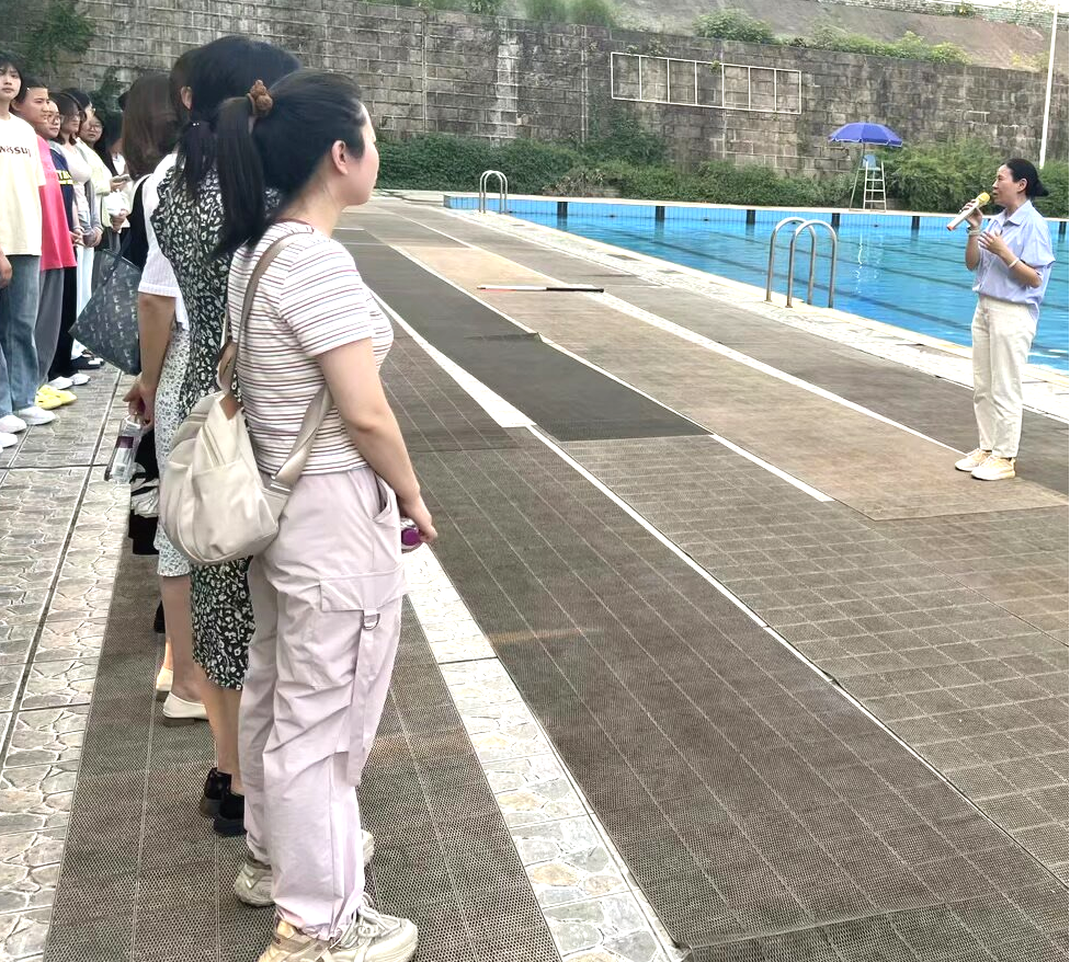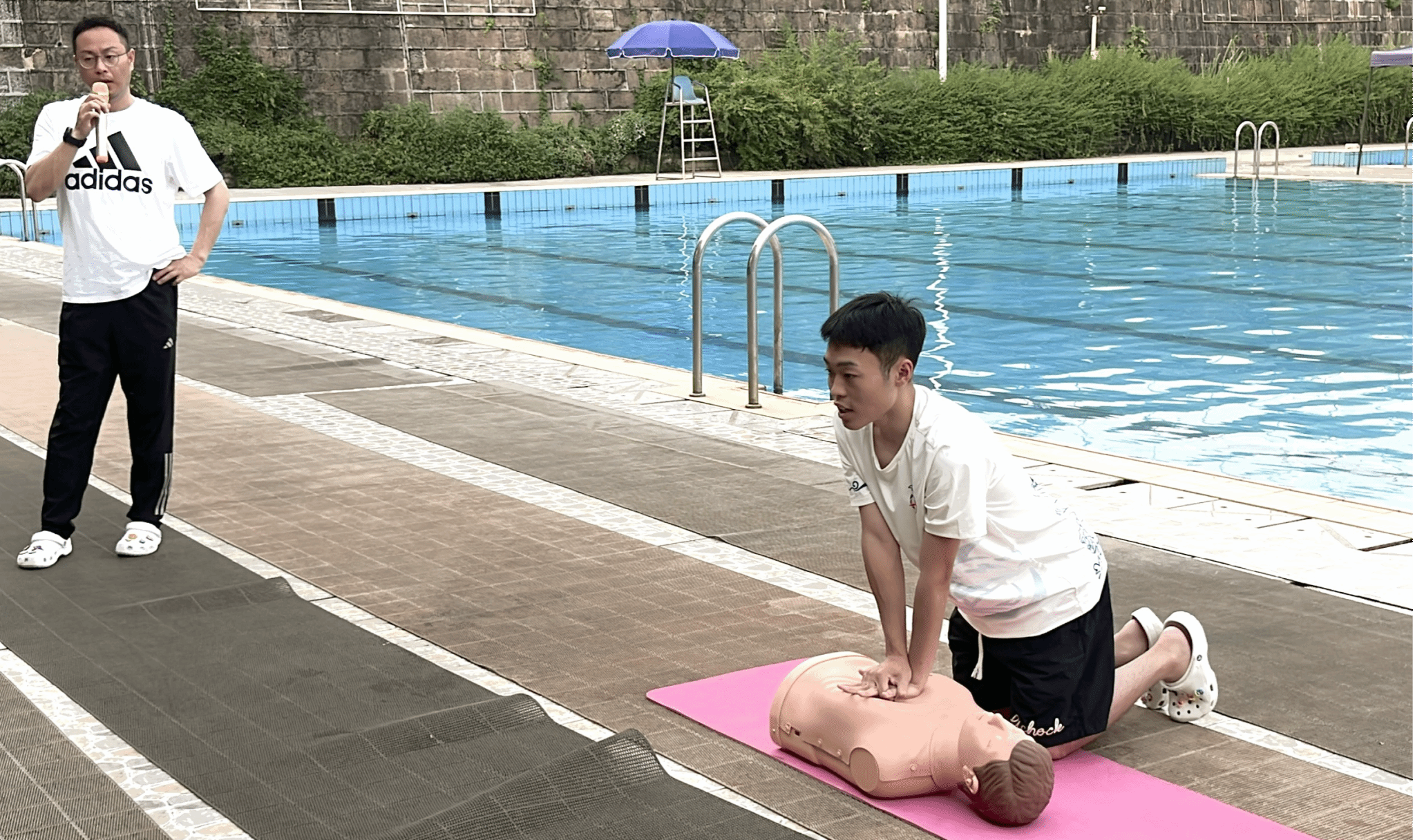 游泳专项班的同学们也积极参与到活动中来,他们不仅向大家详细讲解了防溺水的理论知识,还分享了一些简单实用的应对方法。其中一位同学特别强调:“溺水黄金救援时间仅有4 - 6分钟,在这宝贵的几分钟内,掌握心肺复苏术(CPR)和溺水后如何运用海姆立克急救法,就有可能挽救一条鲜活的生命。”为了让大家更直观地了解急救操作,游泳专项班的同学们还现场演示了急救操作要点,并着重提醒大家“不盲目下水施救”,同时展示了岸上救援和水下救援的正确方法。