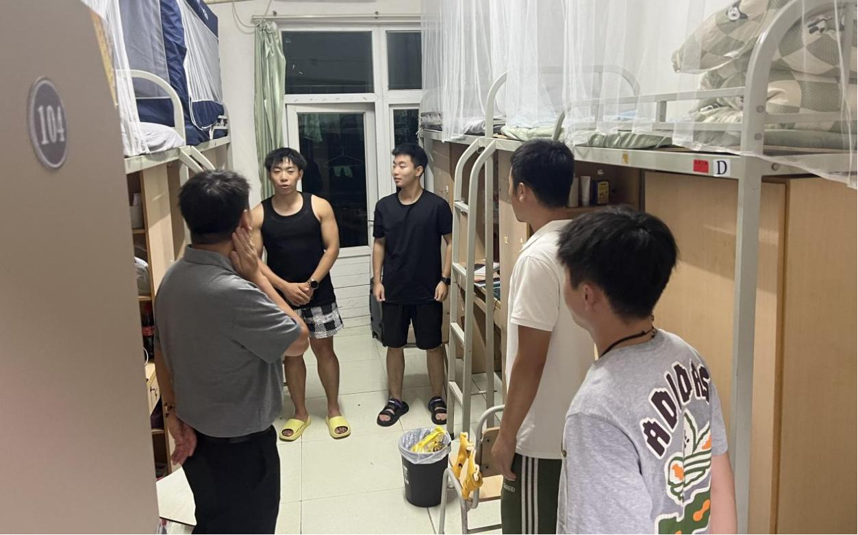 为深入了解新生入学适应情况,进一步加强宿舍安全管理。9月7日晚,校长助理李锐与体育学院副院长卢鹏飞以及大一至大四各年级辅导员一同走访大一新生寝室,开展了一场严谨而温暖的查寝活动。他们不仅细致检查了宿舍安全设施,还与新生亲切交流,为初入校园的学子送去温暖的关怀与实用的指导。