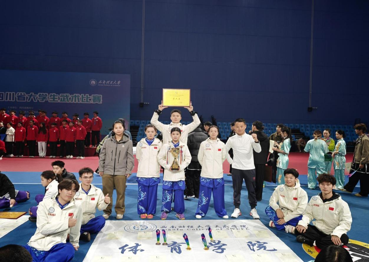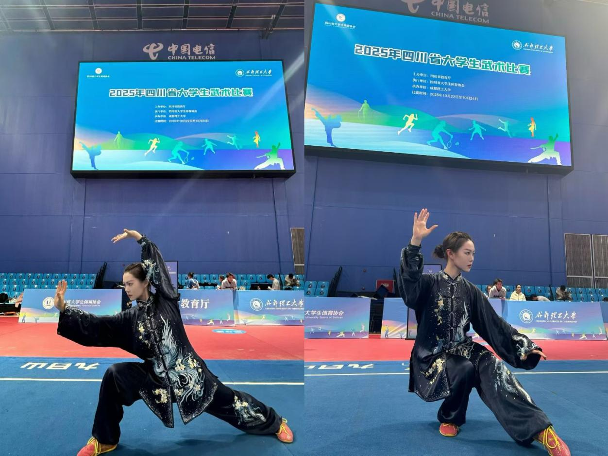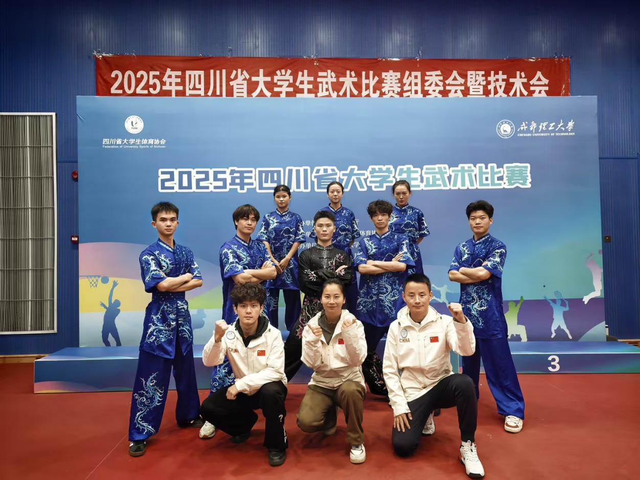 10月23日至24日,由四川省教育厅主办、四川省大学生体育协会执行、成都理工大学承办的2025年四川省大学生武术比赛在成都城东体育公园二期乒乓球训练馆成功举办。我院武术代表队在此次比赛中团结协作、奋勇拼搏,最终荣获专业组团体总分第六名,在参加的16个个人项目中斩获3金、1银、2铜,取得运动成绩与精神文明双丰收,充分展示了体育学院学子优异的竞技水平和良好的精神风貌。