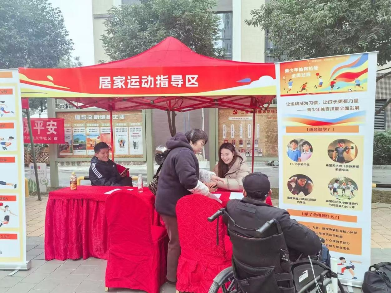 为切实解决社区青少年缺乏系统运动指导、家庭运动场地有限等问题,2025年12月15日,西南财经大学天府学院体育学院联合社区治理学院等多院系,在成都市成华区二仙桥街道东华社区启动“家政进社区”项目,重点打造的“青少年运动指导区”吸引众多居民参与。