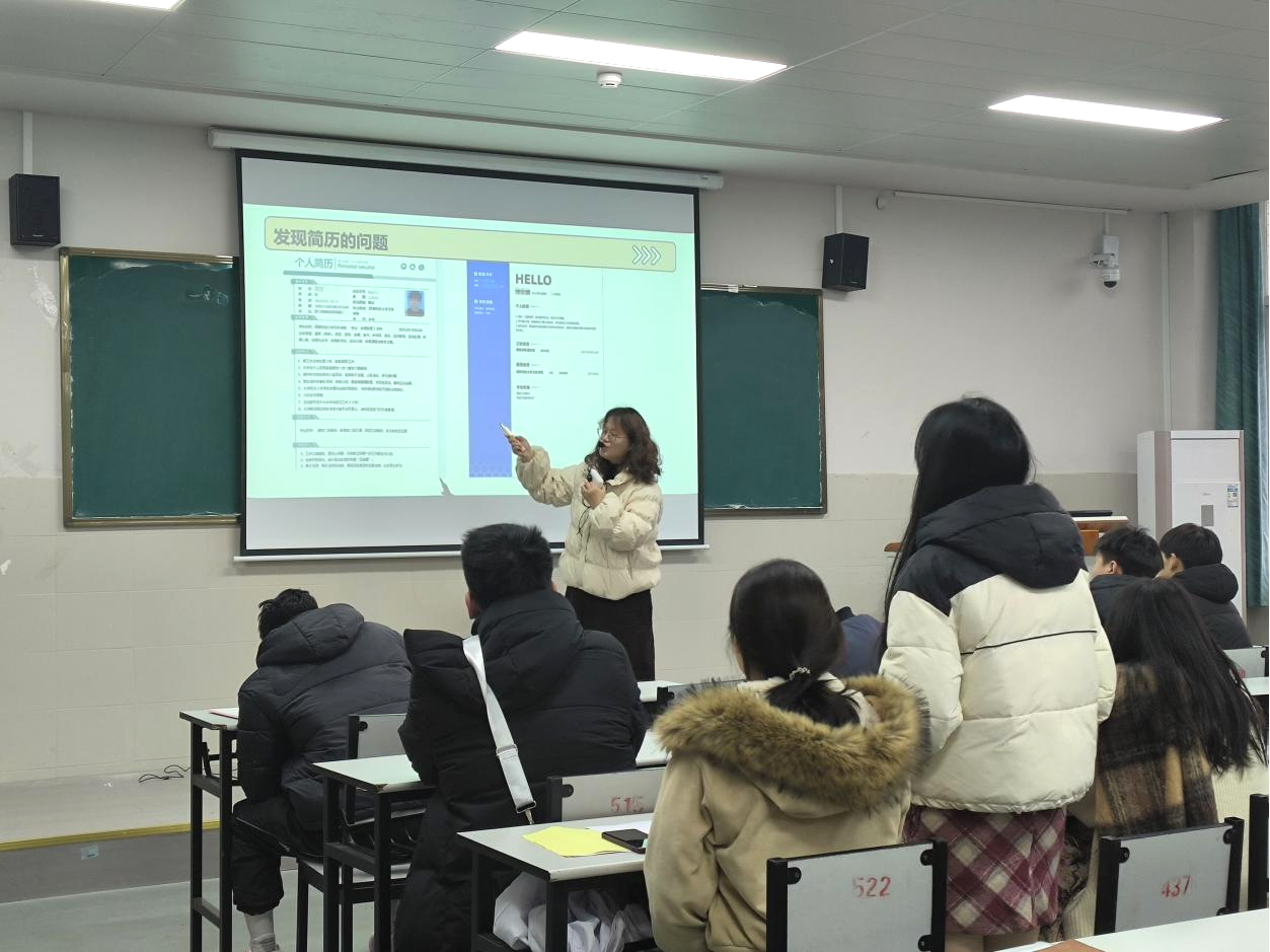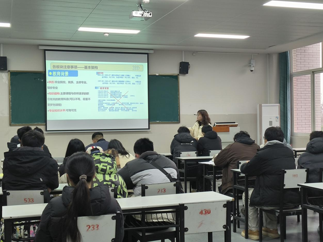 随后,辅导员徐晓霞围绕“专业就业前景分析”“简历制作与优化”以及“求职心态调整”三大板块展开详细讲解。在就业前景方面,她结合体育行业发展趋势与往年毕业生就业情况,分析了体育教育、运动训练、体育产业管理、健康促进等多元发展方向,拓宽了学生对职业选择的认知。在简历制作环节,她通过实例对比,详细说明了如何突出专业优势、实习实践经历与个人技能,使简历更加符合用人单位需求。最后,在心态调整部分,她鼓励同学们树立积极就业观,正确面对求职过程中的挑战与压力,保持自信、耐心与韧性。