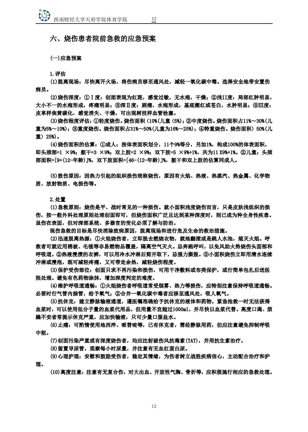 烧伤应急方案