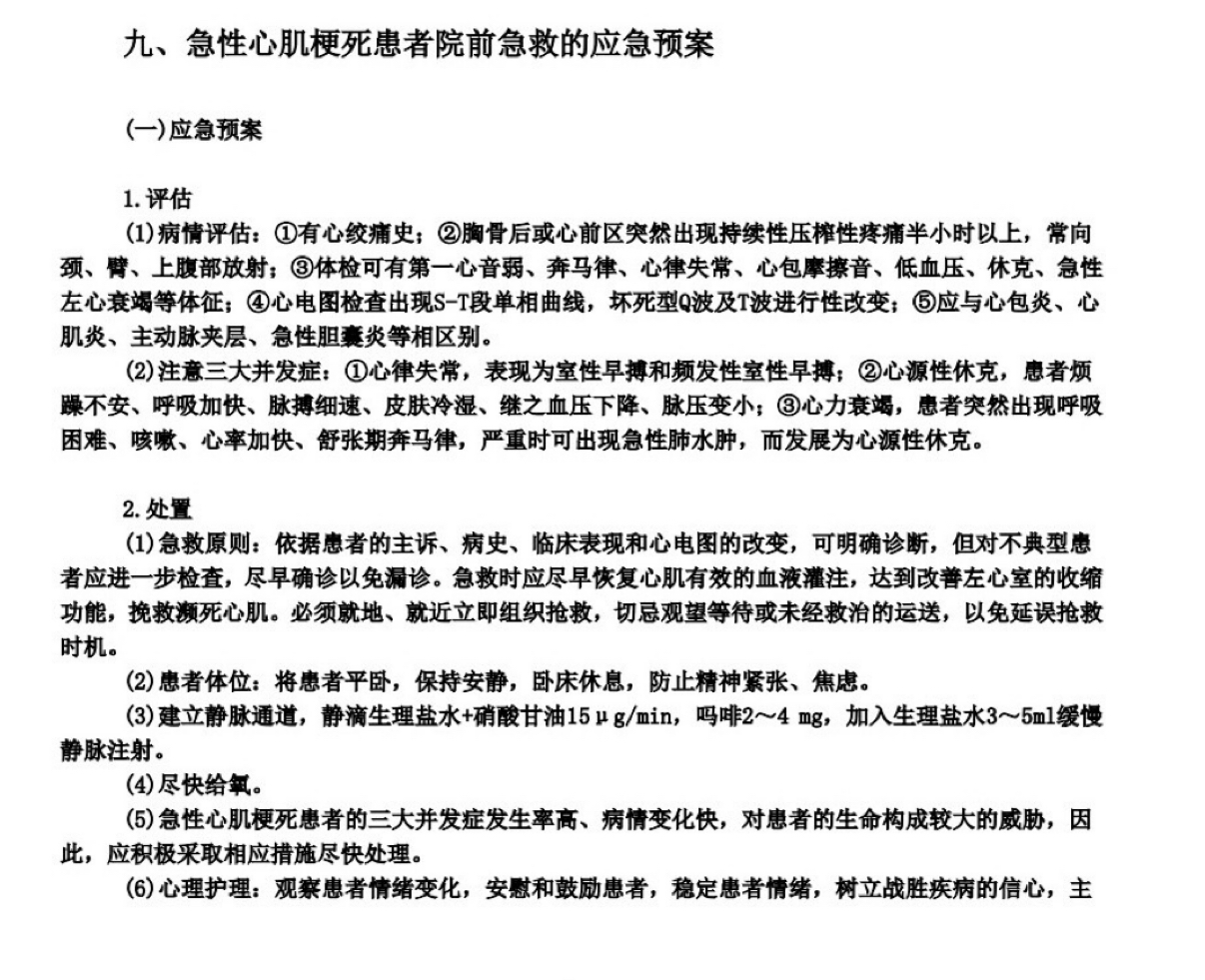 心肌梗死应急方案